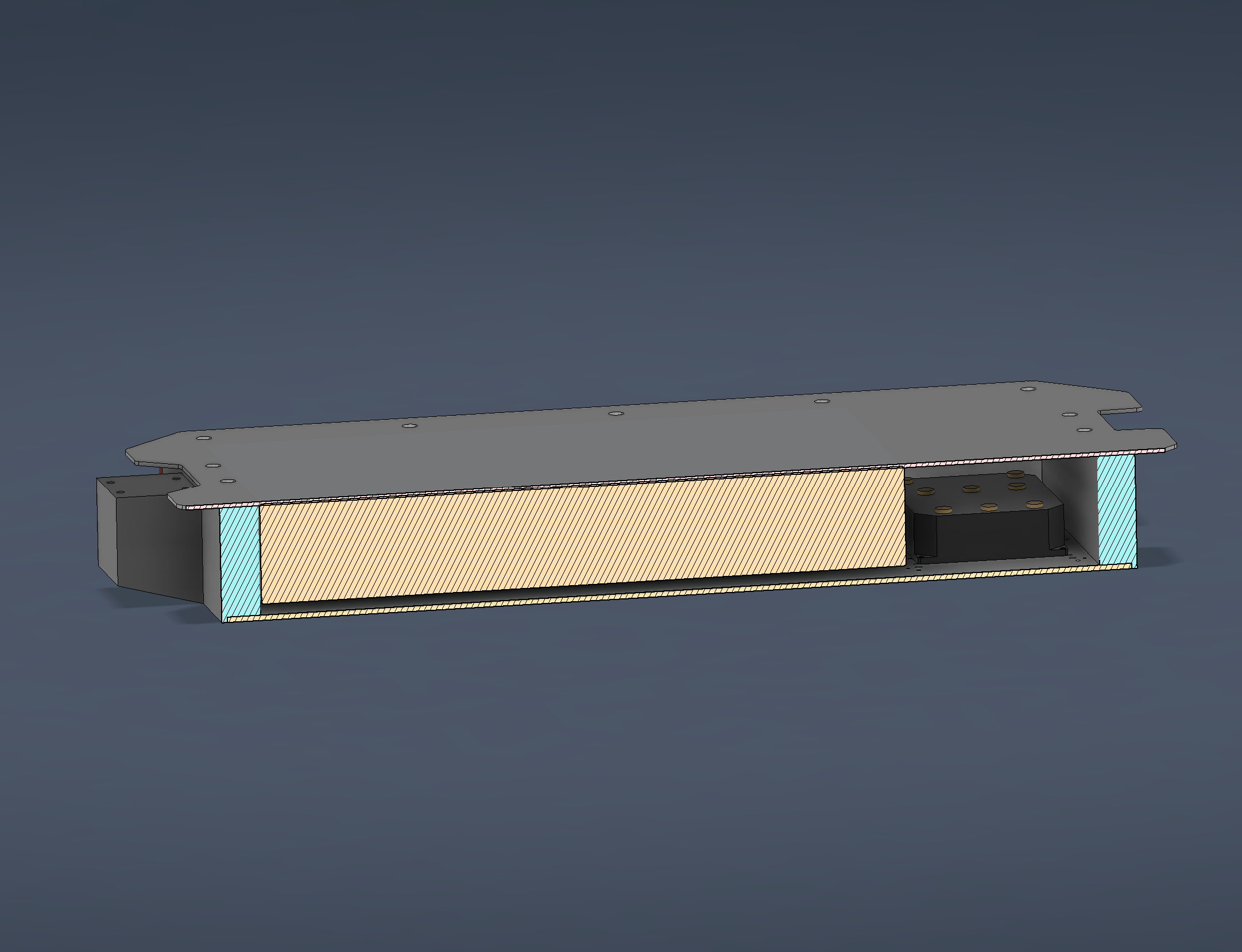 - Volume utile intérieur : L 625 mm x l 222 mm x H 82 mm