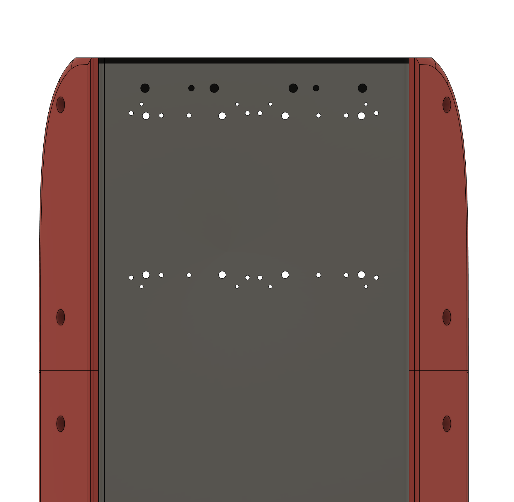 Les carénages latéraux (gauche/droite) intègrent des passages spécifiques pour :