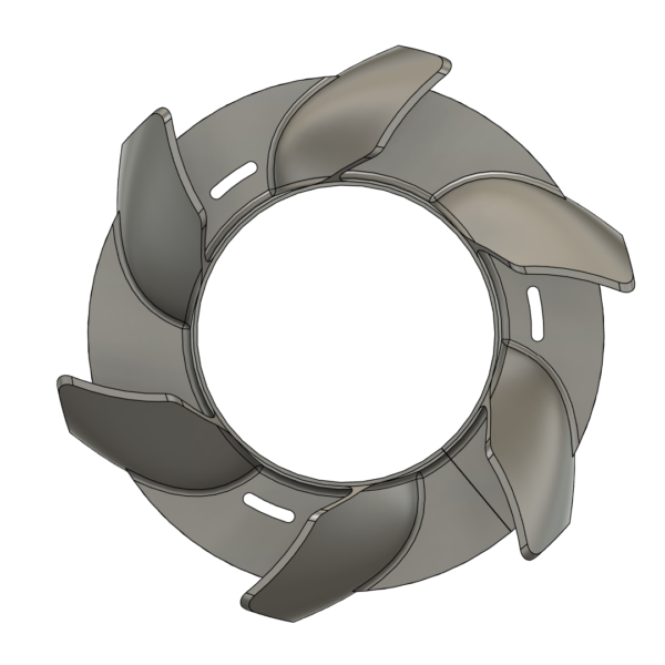 Hélice de refroidissement pour moteur Série X ou M, Utile en usage compétition associé a des trous dans les flasques Imprimé en PETG noir (couleur sur demande) Inclus : Avant ou Arrière : Hélice Vis M3 inox Guide perçage : Guide perçage flasque Phase Guide perçage flasque Disque